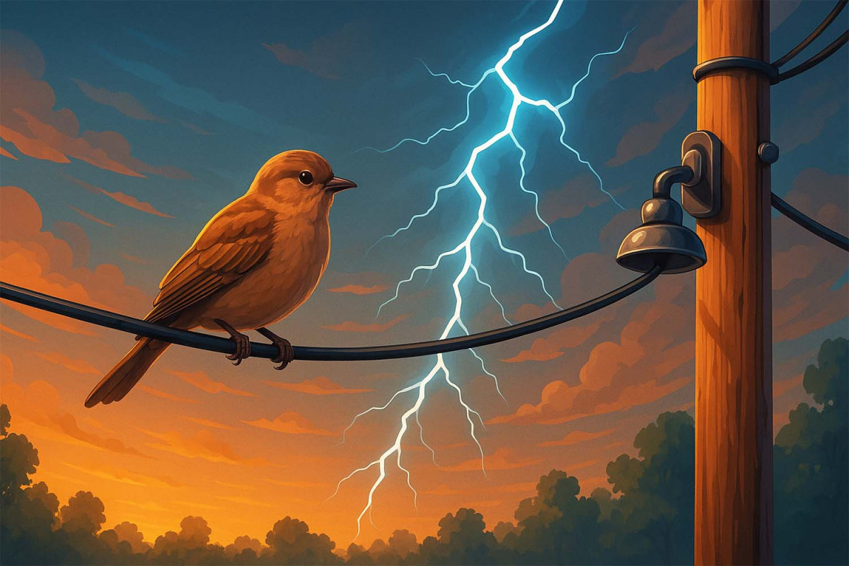 Хоча дроти високої напруги здаються небезпечними, птахи можуть спокійно сидіти на них завдяки особливостям електричного струму. Якщо тіло торкається лише одного дроту – струм просто не має "шляху", яким би міг текти. Але варто птаху або будь-якій іншій істоті доторкнутися до землі або до іншого дроту – і виникає смертельна небезпека.