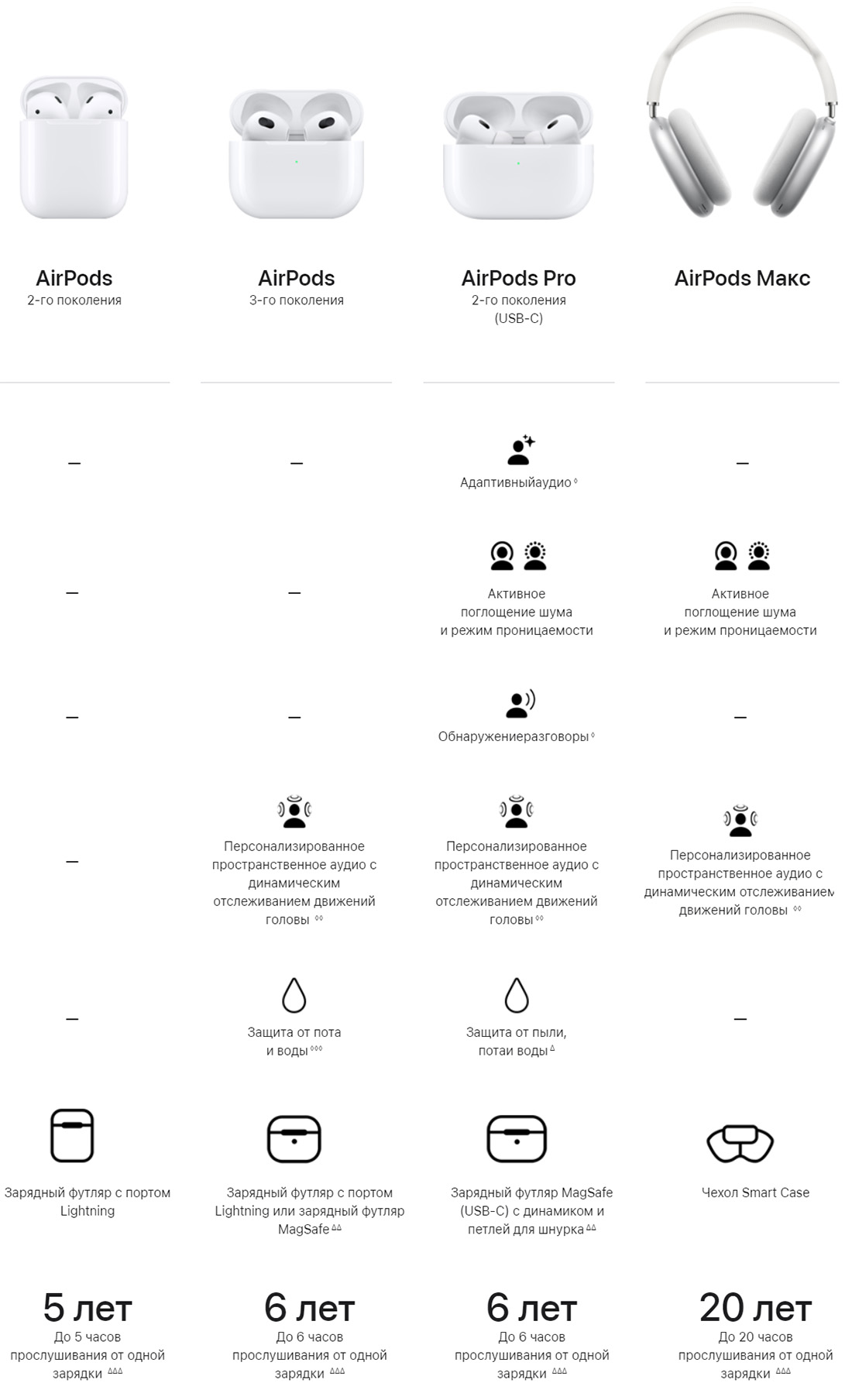Для удобства предлогаем сравнить AirPods Pro 2 с другими моделями наушников Apple: