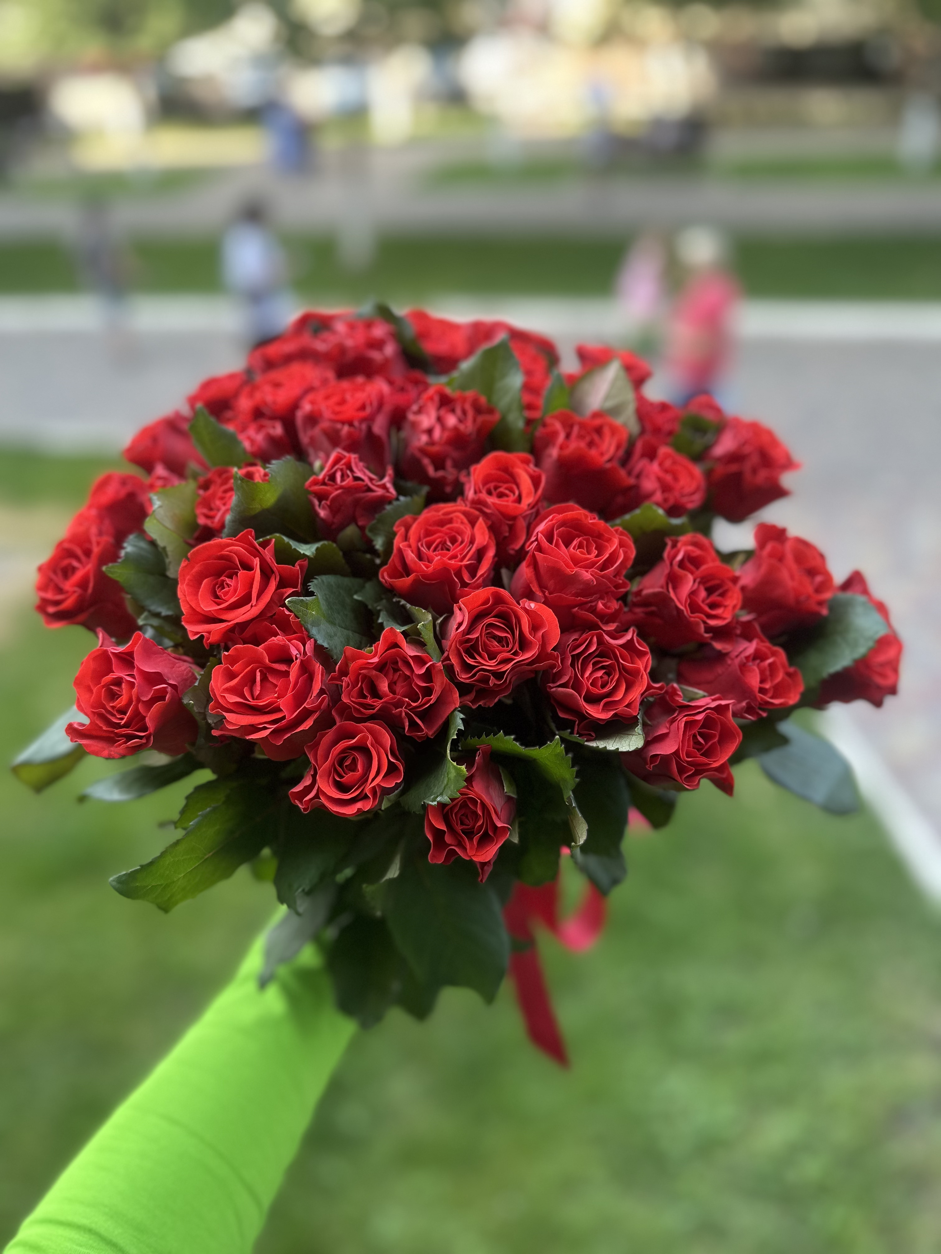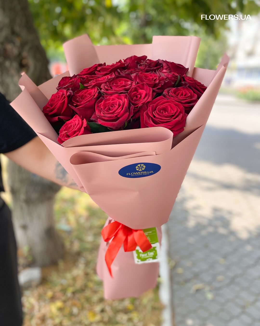 У каталозі Flowers.ua ви знайдете композиції з 9, 25, 51 або навіть 101 червоної троянди — кожна з них має свою інтонацію.