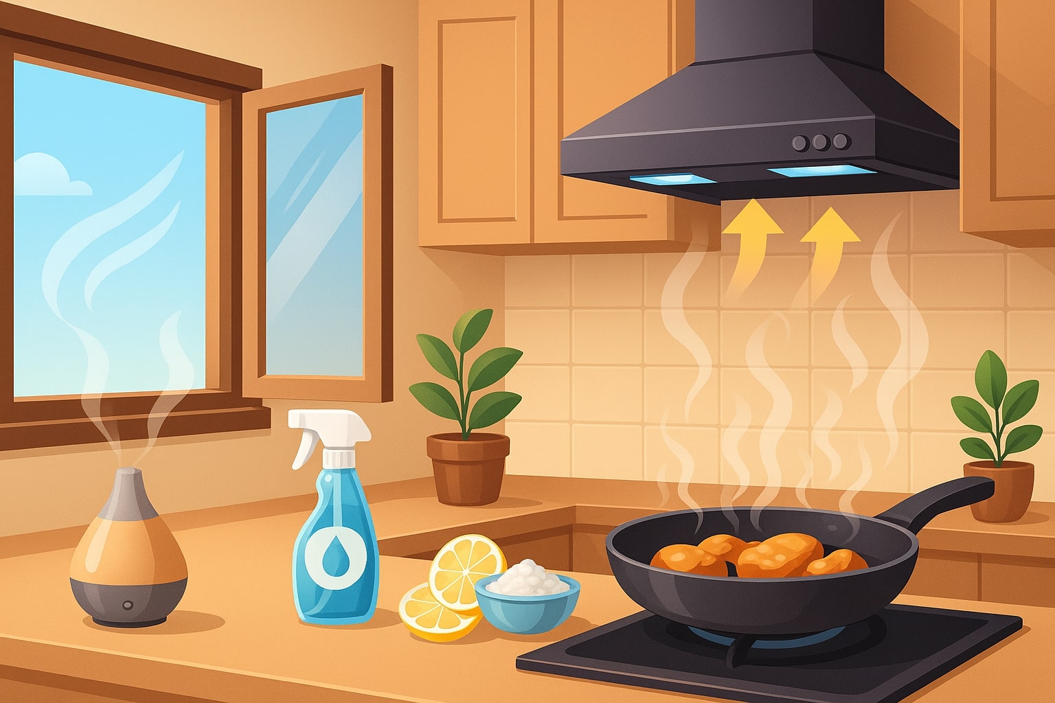 Приготування страв на сковороді часто дарує не лише смачну вечерю, а й стійкий аромат, який довго залишається в повітрі. Особливо це стосується смаження м’яса, риби чи цибулі – запах проникає у меблі, тканини та одяг. Навіть якщо страва вийшла ідеальною, специфічне повітряне тло може зіпсувати враження від затишку в домі. Боротьба з цим явищем іноді здається марною, але існує багато дієвих методів нейтралізації неприємного шлейфу. У цій статті зібрано практичні поради, що допоможуть швидко та ефективно освіжити кухню.
