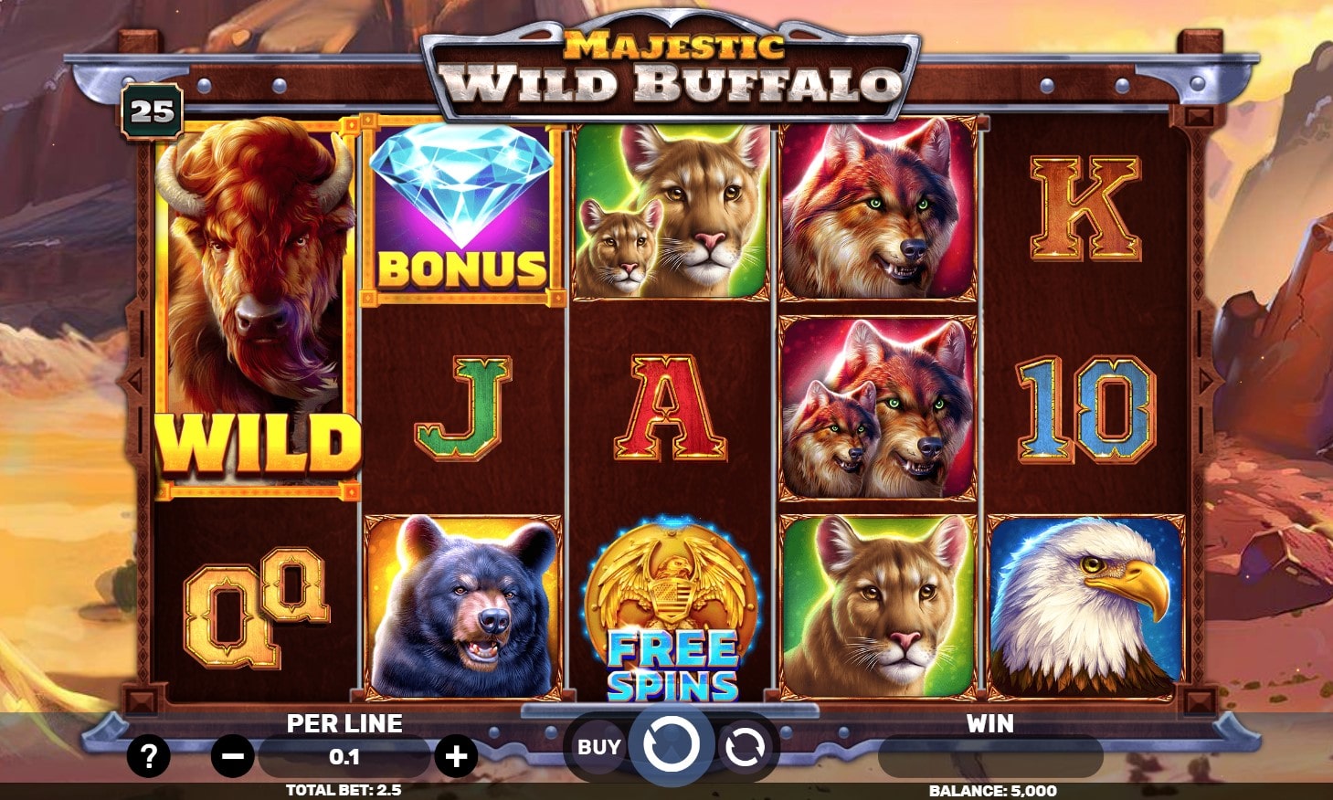 Buffalo – це популярний гральний автомат, розроблений компанією Pragmatic Play. Слот має 6 барабанів та 4096 ліній виплат, кількість яких гравці можуть змінювати за своїм бажанням. Така велика кількість ліній виплат забезпечує безліч можливостей для виграшу. Гра виконана у тематиці дикої природи, із символами бізонів та інших тварин. Графіка гри яскрава та насичена, із реалістичними зображеннями тварин. Buffalo також пропонує різні бонусні функції, включаючи фріспіни та додаткові множники виграшів. Звукові ефекти гри додають атмосферності, створюючи відчуття перебування у дикій природі. Загалом, Buffalo є захоплюючим слотом із великими можливостями для виграшу та привабливою графікою.